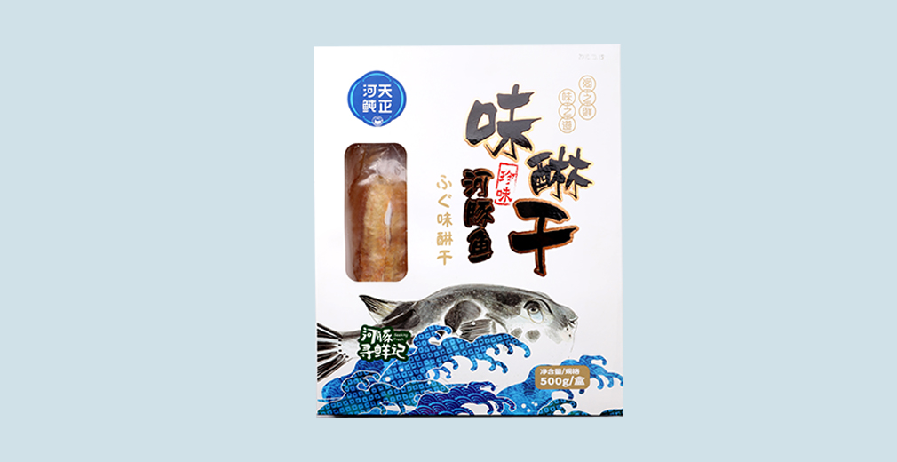 味醂魚干 天正味醂河豚魚干,用料嚴格、工序考究、傳承古法。我們取河豚魚精肉,去骨去膜、標準切割,經(jīng)數(shù)天低溫風干,祛除魚肉內水分,再添加味醂調味料,浸入鮮甜美味。解凍后,烤箱烘烤便可食用。